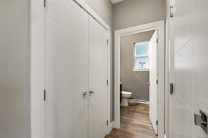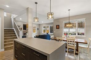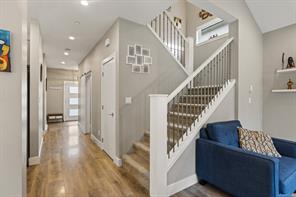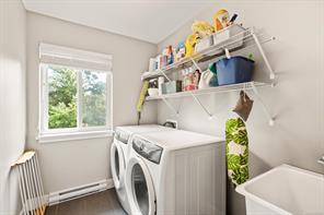 Upstairs, the spacious primary suite boasts a walk-in closet and a luxurious ensuite with double sinks and heated floors. Two additional bedrooms, a full bathroom, and a convenient laundry room complete the upper level.
