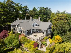 Introducing ‘Kingsmount’, a landmark Castle like estate in prestigious Oak Bay. Designed by D.C. Frame and Samuel Maclure, this exquisite example of British Arts and Crafts architecture combines old-world charm with modern luxury. The grand main floor is ideal for entertaining with a chef’s kitchen, elegant dining, impressive living room, music room, office, library, and sitting room. Upstairs features a stately primary suite plus six more bedrooms—many with fireplaces, walk-ins, and two 4pc baths. The lower level includes a guest suite with private entrance, wine room, and workshop. Experience true indoor/outdoor living with sweeping ocean views and a clear sightline to Mt. Baker. The park-like grounds offer serene privacy with patios, a water feature, garden paths, and mature trees. Located near trails, beaches, parks, schools, Oak Bay Village, shops, dining, and more. Just steps from Gonzales Hill Park. Truly a rare and refined opportunity!