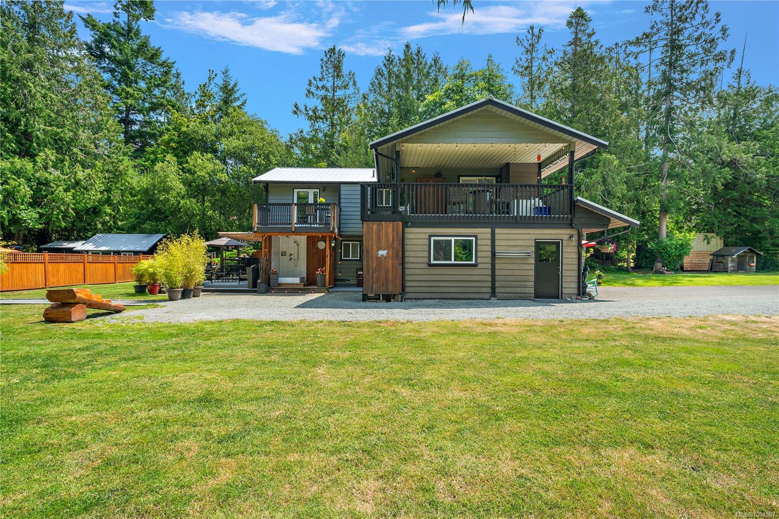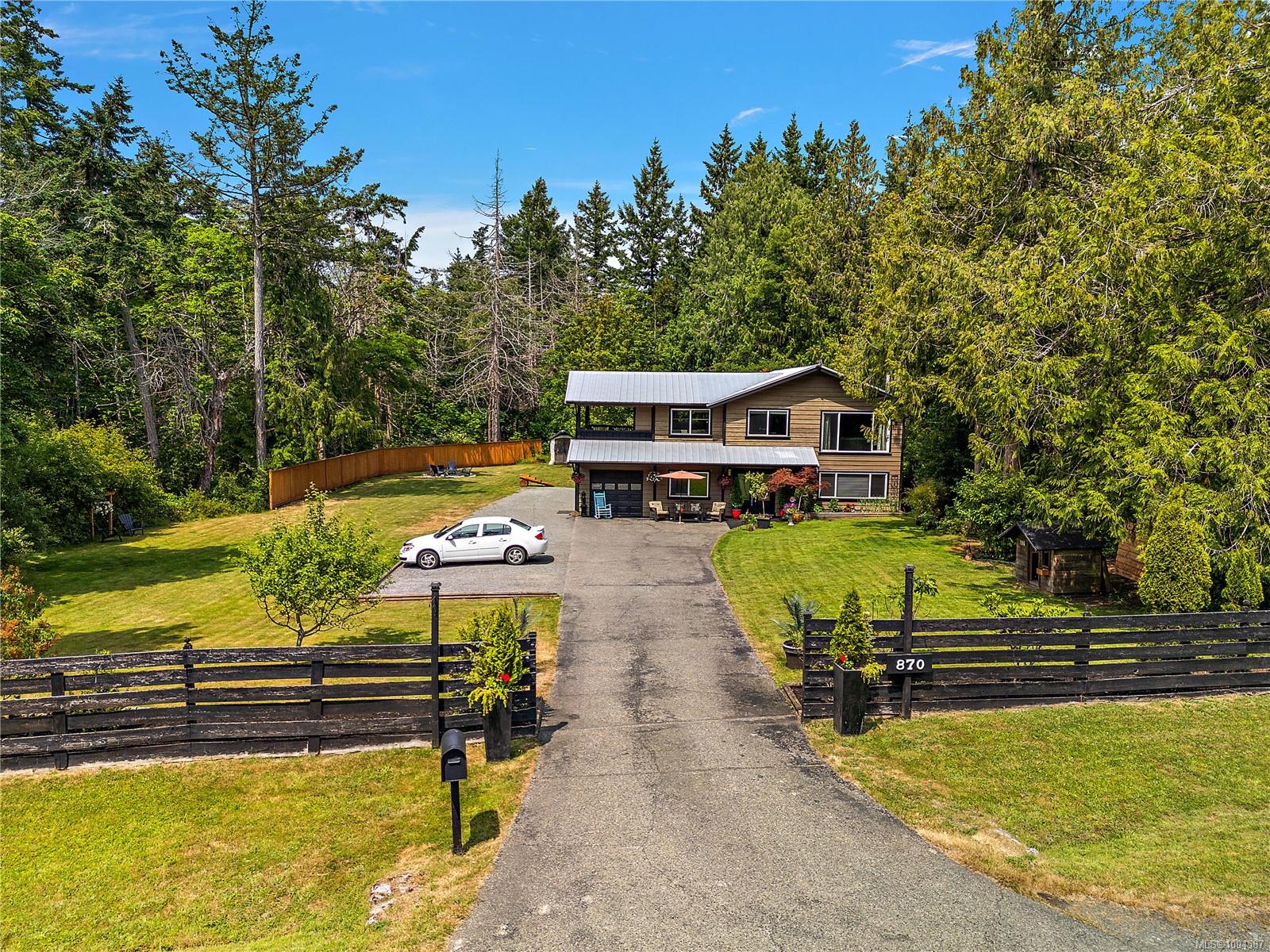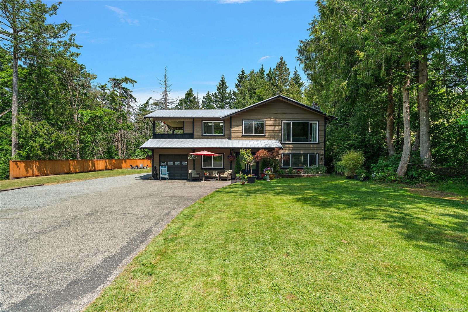 Experience the best of Deep Cove at 870 Woodcreek Dr. This 2,796 sq.ft. 4BD/4BA home + detached studio sits on a sunny, private & very usable flat 1-acre lot, cleared & bordered by parkland. The main floor features a bright open layout, propane FP, hardwood floors & updated kitchen w/ granite counters, skylights & subway tile backsplash. The primary suite offers a walk-in closet & reno’d 3pc ensuite. Enjoy 2 large decks overlooking the sun-filled yard—perfect for entertaining or relaxing. Downstairs includes a 2BD suite w/ 3pc bath, laundry, & oversized single garage w/ storage—ideal for in-laws or income. Embrace indoor/outdoor living w/ an outdoor kitchen, shower, firepit, roughed-in hot tub area & multiple decks. The detached studio offers additional accommodation. Metal roof for peace of mind & loads of parking incl. RV. Quiet Deep Cove location near schools, market, wineries, marinas, ferry, airport & Sidney. A rare blend of comfort, privacy & lifestyle in a sought-after setting.