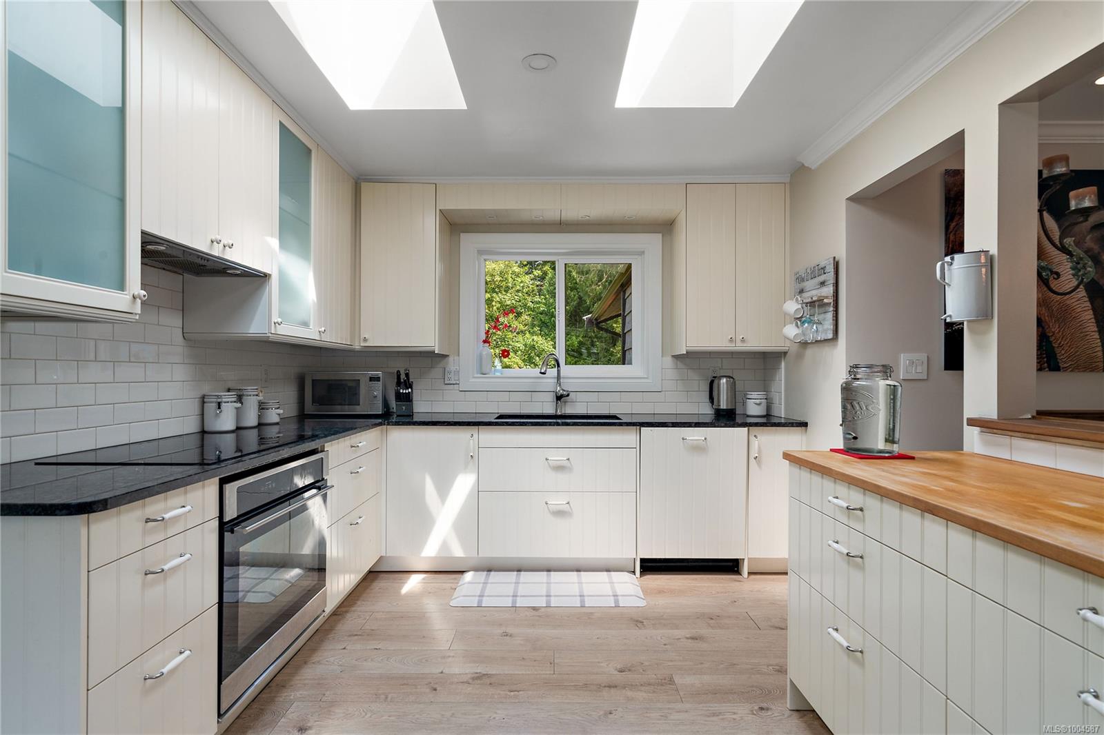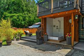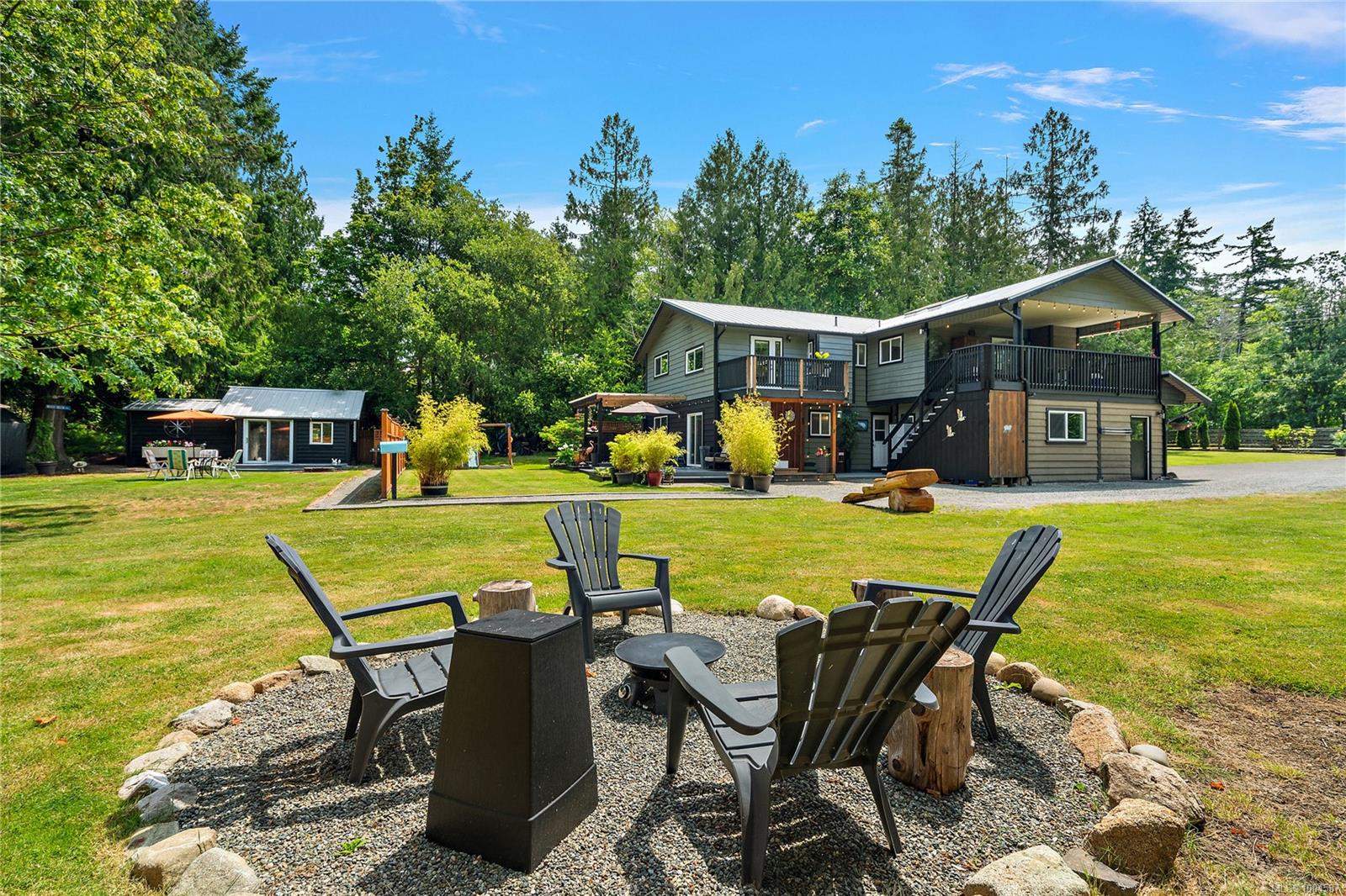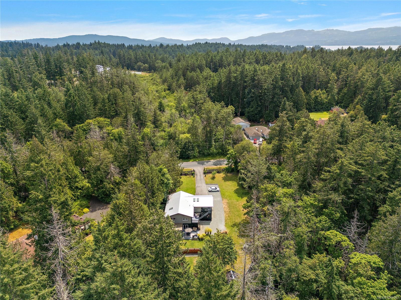 Experience the best of Deep Cove at 870 Woodcreek Dr. This 2,796 sq.ft. 4BD/4BA home + detached studio sits on a sunny, private & very usable flat 1-acre lot, cleared & bordered by parkland. The main floor features a bright open layout, propane FP, hardwood floors & updated kitchen w/ granite counters, skylights & subway tile backsplash. The primary suite offers a walk-in closet & reno’d 3pc ensuite. Enjoy 2 large decks overlooking the sun-filled yard—perfect for entertaining or relaxing. Downstairs includes a 2BD suite w/ 3pc bath, laundry, & oversized single garage w/ storage—ideal for in-laws or income. Embrace indoor/outdoor living w/ an outdoor kitchen, shower, firepit, roughed-in hot tub area & multiple decks. The detached studio offers additional accommodation. Metal roof for peace of mind & loads of parking incl. RV. Quiet Deep Cove location near schools, market, wineries, marinas, ferry, airport & Sidney. A rare blend of comfort, privacy & lifestyle in a sought-after setting.